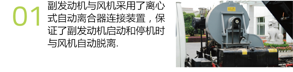 · 副发动机与风机采用了离心式自动离合器连接装置,保证副发动机在启动和停机时与风机自动脱离,可提高副发动机的工作可靠性和使用寿命,简化操作。