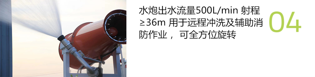 ●360°旋转的后置水炮,可设置成柱状或雾状出水,远射程超过36米。