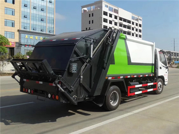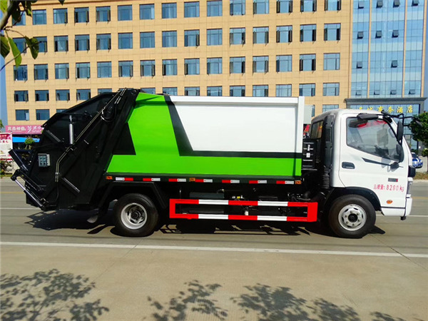 ⑨ 方便的操作控制 作业控制盒分别安装在驾驶室内和车尾,驾驶室内的作业控制盒可控制推挤卸料和选择操作模式(如自动或手动),车尾的作业控制盒则控制压填机构和翻桶机构的作业,使用操作十分方便。特别是在垃圾填埋场,作业人员无须下车即可完成卸料和污水排放。