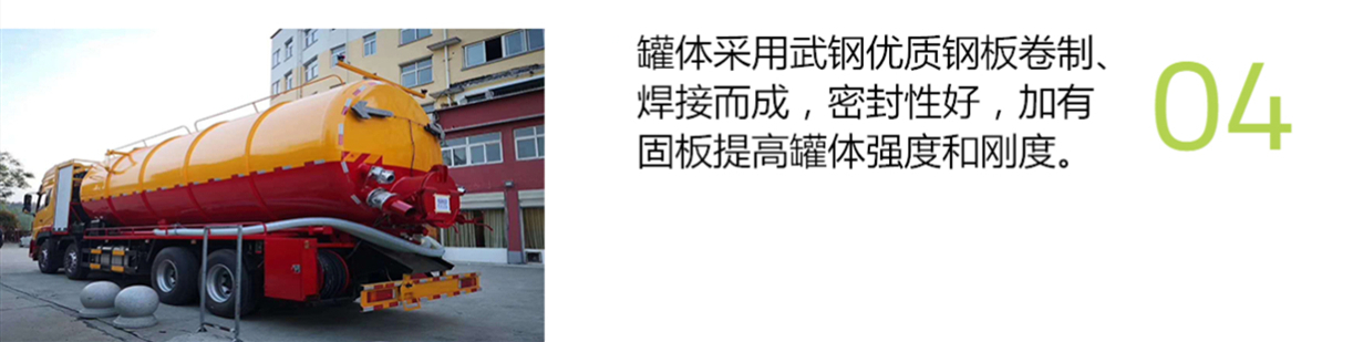 该车适用于雨水井、沉淀井、沟渠的吸污清污作业。也适用于炼油、钢铁、化工、房管、环卫等行业的废水、积淀物的抽吸、装运和排卸作业。